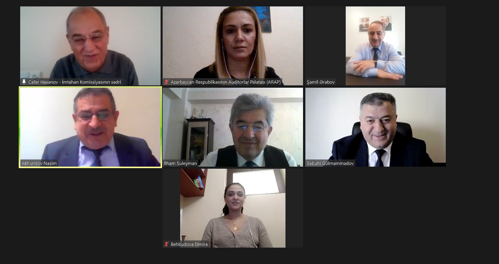 Azərbaycan Respublikası Auditorlar Palatası sədrinin 2020-ci il 14 iyul tarixli 1/19 saylı “Azərbaycan Respublikasının Auditorlar Palatasında auditor adı almaq üçün imtahanların onlayn qaydada keçirilməsi barədə” Sərəncamına uyğun olaraq, 2021-ci 27 dekabr tarixində auditor adı almaq üçün müraciət etmiş şəxslərə və bir qrup auditorlara auditor fəaliyyəti ilə məşğul olmaq üçün icazələrinin qüvvədəolma müddətinin başa çatması ilə əlaqədar onlayn şifahi imtahan keçirilmişdir. İmtahanda ümumi 17 nəfər iştirak etmişdir. İmtahanın nəticələri barədə təsdiq edilmiş protokolları təqdim edirik: