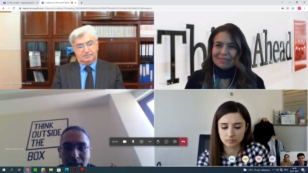 24 yanvar 2022-ci il tarixində 1904-cü ildə təsis edilmiş, baş ofisi Londonda yerləşən, Sertifikatlı Mühasib ixtisasını təklif edən və dünya üzrə 233.000 üzvü olan qlobal peşəkar mühasibatlıq qurumu – İmtiyazlı Sertifikatlaşdırılmış Mühasiblər Assosiasiyasının (ACCA) Türkiyə, Azərbaycan, Gürcüstan və Əfqanıstan ölkələri üzrə rəhbərliyi ilə Azərbaycan Respublikasının Auditorlar Palatası arasında mövcud əlaqələrin gücləndirilməsi istiqamətində hər iki qurumun rəhbərliyinin və üzvlərinin iştirakı ilə videokonfrans formatında görüş keçirilib.