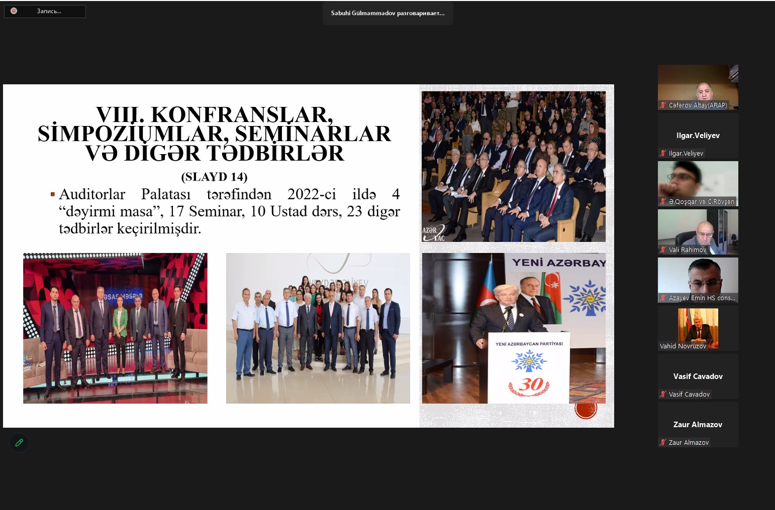 Şura üzvlərinin və Palatanın Şurası yanında Komitə sədrlərinin iştirak etdiyi iclasda auditin aktual problemlərinə dair aşağıdakı məsələlər müzakirə edilmiş və müvafiq qərarlar qəbul edilmişdir: