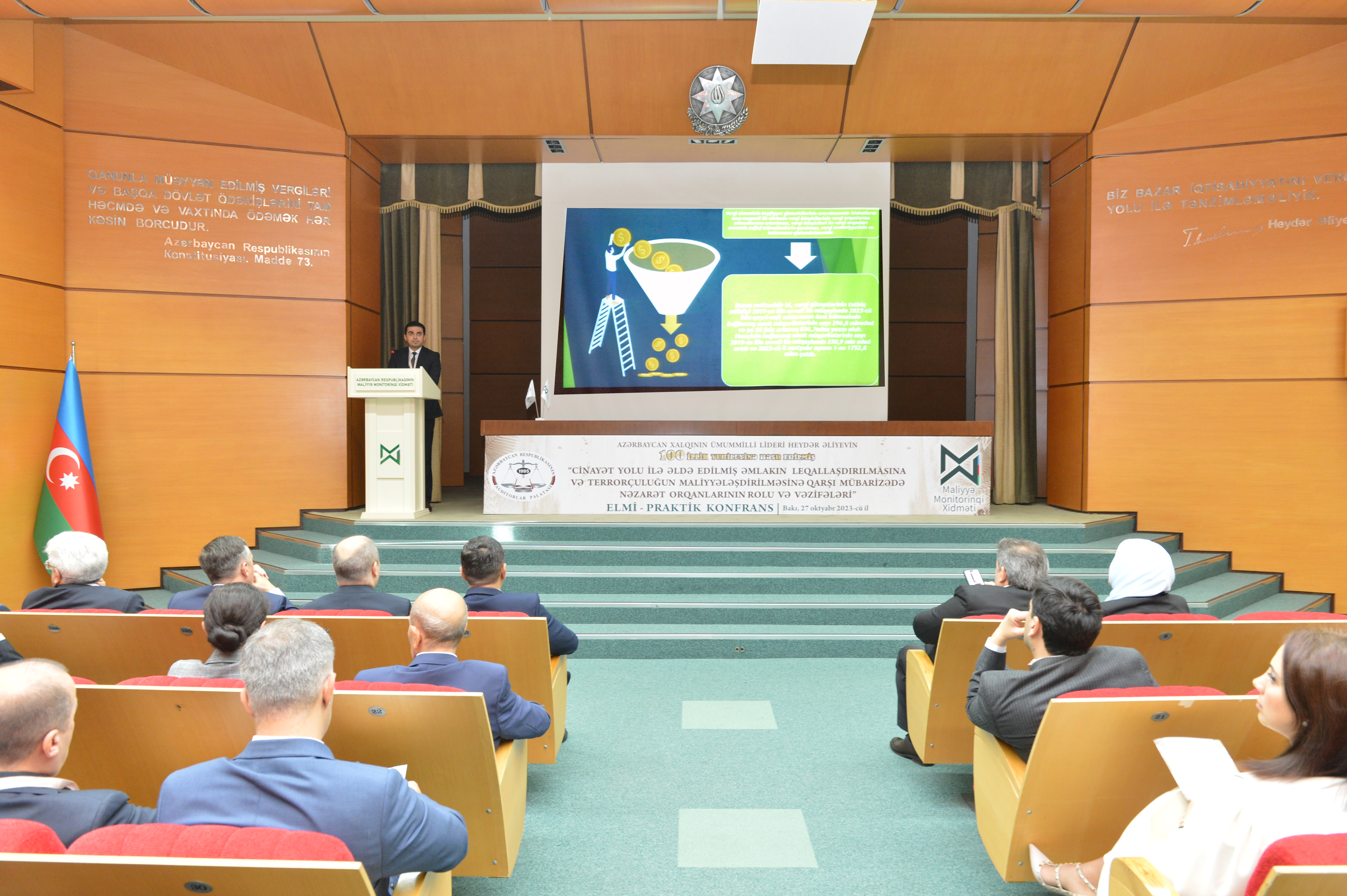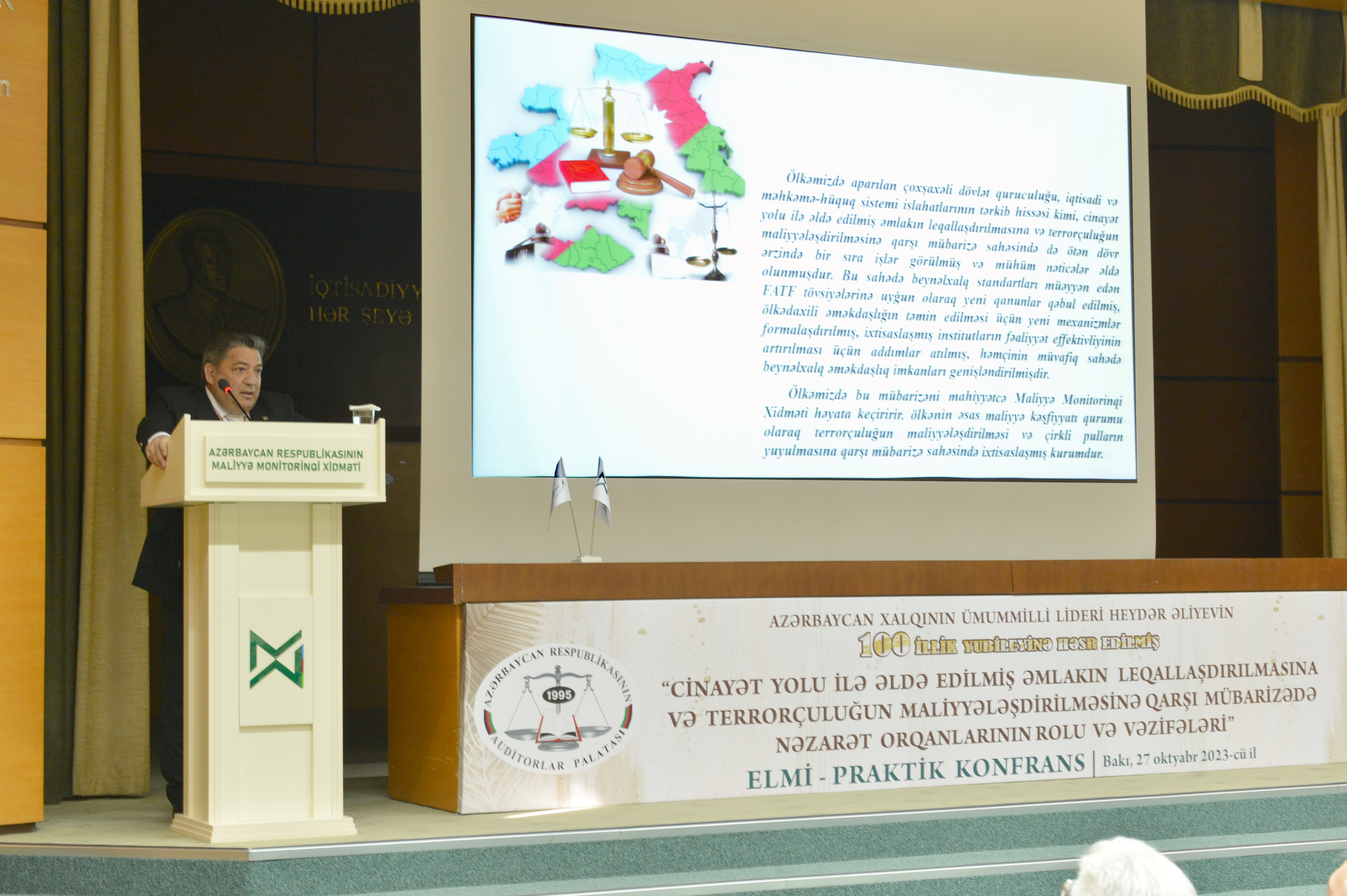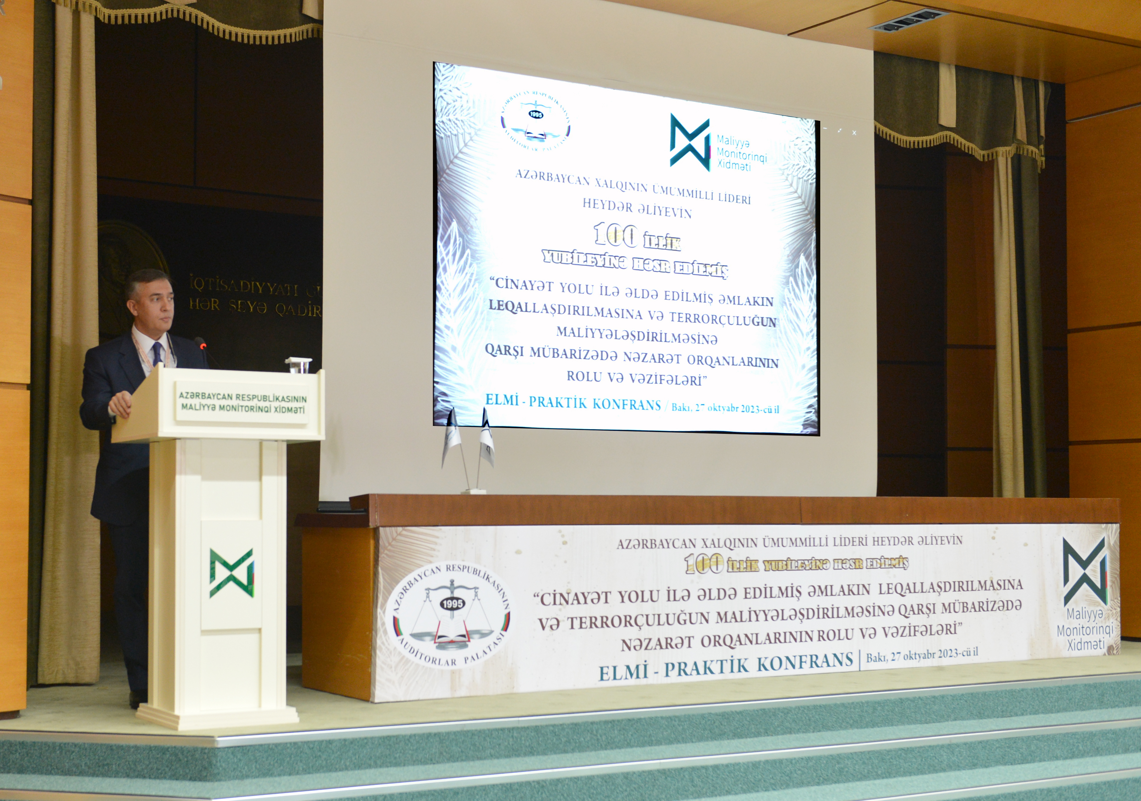 Konfransın keçirilməsində məqsəd “Cinayət yolu ilə əldə edilmiş əmlakın leqallaşdırılmasına və terrorçuluğun maliyyələşdirilməsinə qarşı mübarizə haqqında” Azərbaycan Respublikasının 2022-ci il 30 dekabr tarixli 781-VIQ nömrəli, “Hədəfli maliyyə sanksiyaları haqqında” Azərbaycan Respublikasının 2022-ci il 30 dekabr tarixli 782-VIQ nömrəli və “Azərbaycan Respublikasının Cinayət Məcəlləsində və Azərbaycan Respublikasının İnzibati Xətalar Məcəlləsində dəyişiklik edilməsi haqqında” Azərbaycan Respublikasının 2022-ci il 30 dekabr tarixli 783-VIQD nömrəli Qanunlarının qüvvəyə minməsi, habelə Azərbaycan Respublikası Prezidentinin 2023-cü il 28 fevral tarixli 3770 nömrəli sərəncamı ilə təsdiq edilmiş “Cinayət yolu ilə əldə edilmiş əmlakın leqallaşdırılmasına və terrorçuluğun maliyyələşdirilməsinə qarşı mübarizəyə dair 2023-2025-ci illər üzrə Milli Fəaliyyət Planı”nın nəzarət qurumları və öhdəlik daşıyan şəxslər qarşısında yaratdığı yeni vəzifələrin icrası istiqamətində işgüzar müzakirələrin aparılması və tövsiyələr hazırlamaqdan ibarət olub.Tədbirə ölkəmizin dövlət qurumlarını, aparıcı elm-təhsil müəssisələri, kütləvi-informasiya vasitələrini təmsil edən nümayəndələr, Auditorlar Palatasının kollektivi və üzvləri qatılıblar. Konfransı Azərbaycan Respublikası Maliyyə Monitorinqi Xidmətinin İdarə Heyətinin sədri Zaur Fətizadə və Azərbaycan Respublikası Auditorlar Palatasının sədri Vahid Novruzov açaraq konfransın əhəmiyyətindən bəhs ediblər. Konfransda həmçinin Azərbaycan Banklar Assosiasiyasının prezidenti Zakir Nuriyev, Azərbaycan Respublikası Maliyyə Monitorinqi Xidmətinin Nəzarət və hüquq mühafizə orqanları ilə iş departamentinin direktoru Nurlan Babayev, Azərbaycan Dövlət İqtisad Universitetinin (UNEC) Elmi fəaliyyətin təşkili və idarəedilməsi departamentinin direktoru, i.e.d, professor Zahid Məmmədov, Azərbaycan Respublikası Mərkəzi Bankının Maliyyə Monitorinqi departamentinin 2-ci monitorinq şöbəsinin rəisi Vüsal Həsənov, Azərbaycan Dövlət İqtisad Universitetinin (UNEC) professoru Saleh Məmmədov, Azərbaycan İqtisadçılar İttifaqının sədr müavini, Azərbaycan Dövlət İqtisad Universitetinin (UNEC) dosenti Elşad Səmədzadə, İqtisadi islahatların Təhlili və Kommunikasiya Mərkəzinin aparıcı məsləhətçisi Yusif Məmmədov, Azərbaycan Respublikası Ədliyyə Nazirliyinin Ədliyyə sahəsində xidmətlər baş idarəsinin Nəzarət-analitik iş üzrə qrup rəhbəri Leyla Bərxudarzadə, Auditorlar Palatasının üzvü, sərbəst auditor Şamxal Kərimov, “Konstitusiya” Araşdırmalar Fondunun prezidenti, Ədliyyə Nazirliyi yanında İctimai Şuranın üzvü Əliməmməd Nuriyev və “KPMG Audit Azərbaycan” MMC-nin Audit üzrə partnyoru Nəsibə Muradxanova məruzələrlə çıxış ediblər.