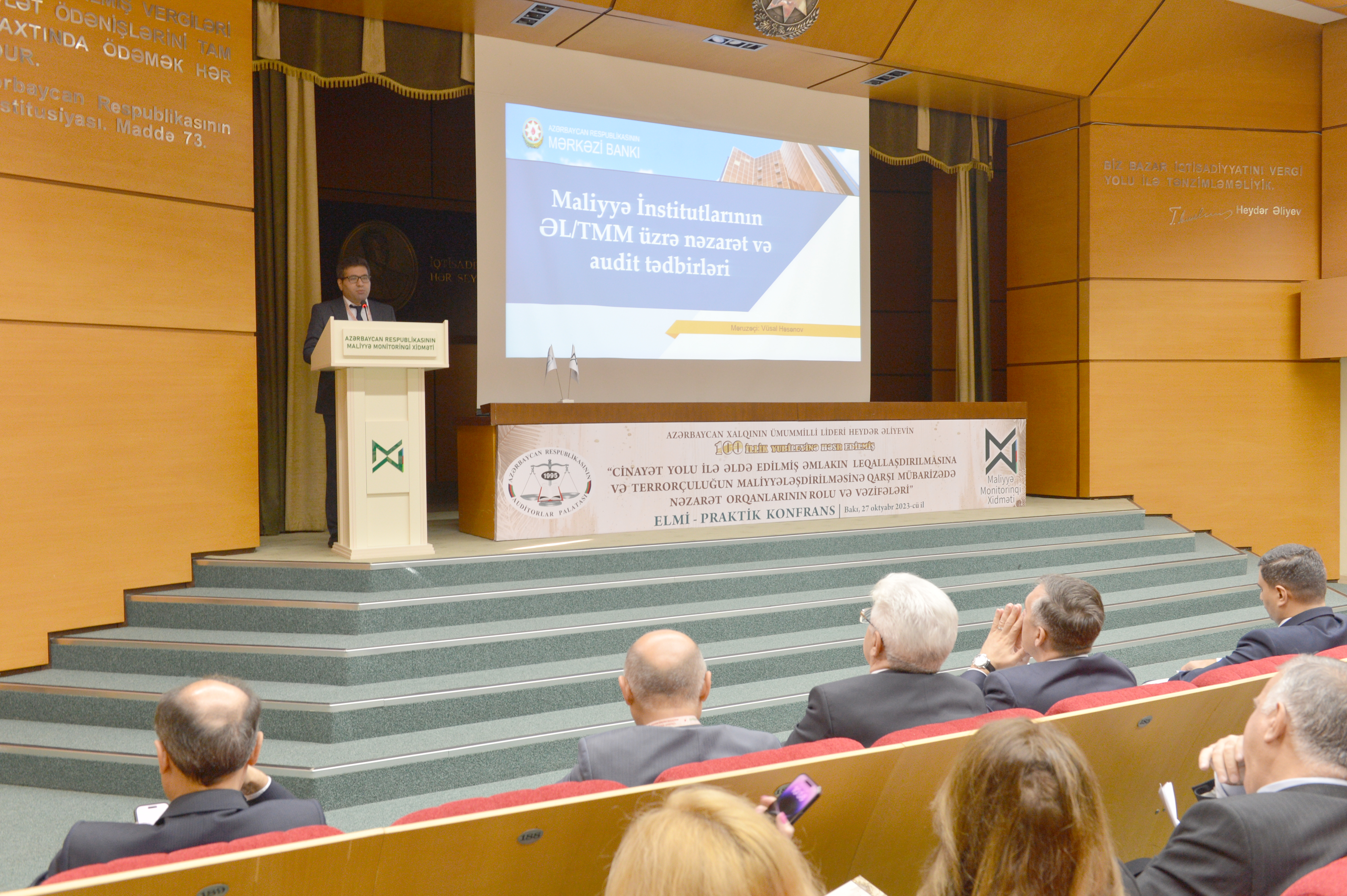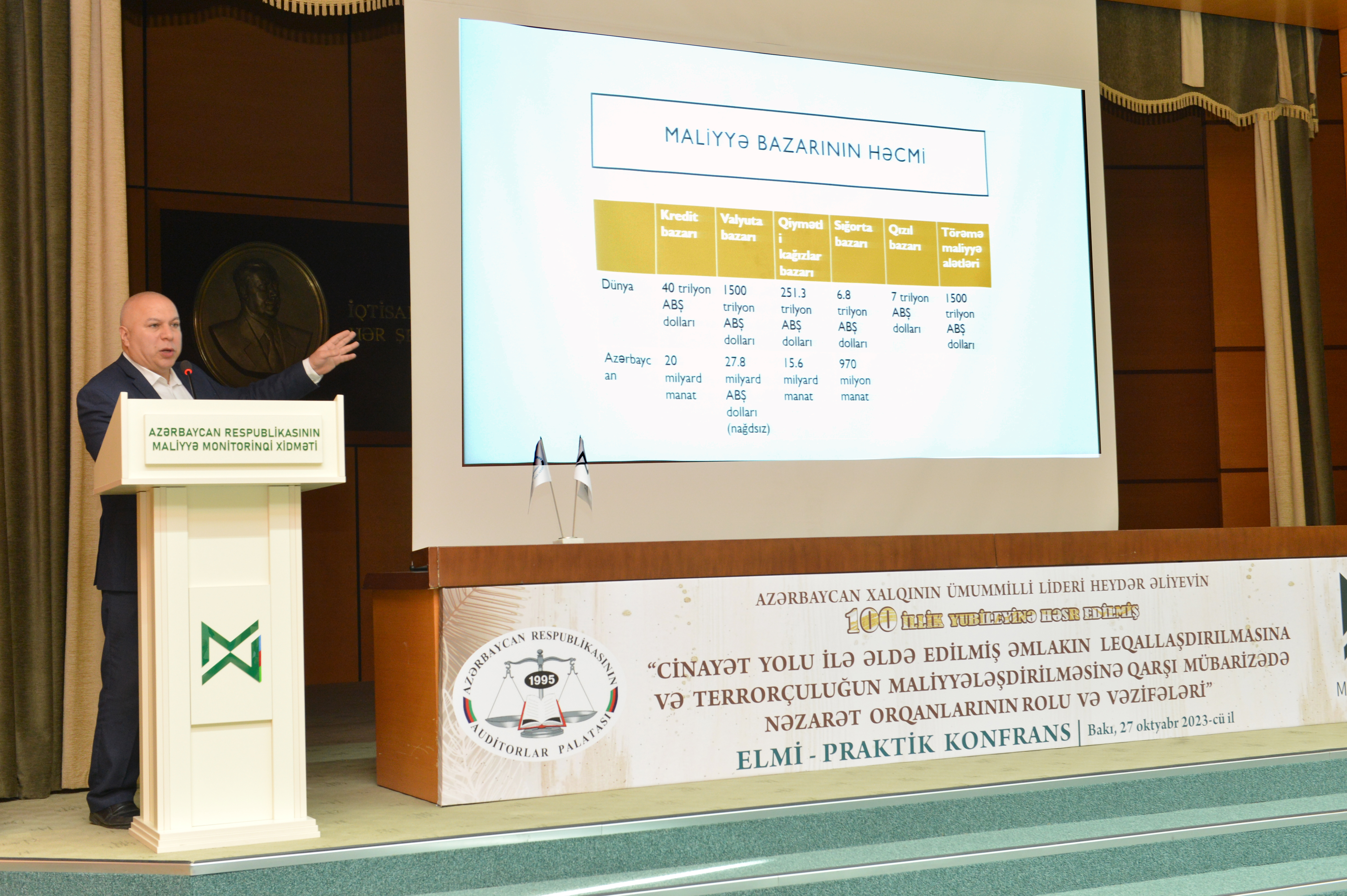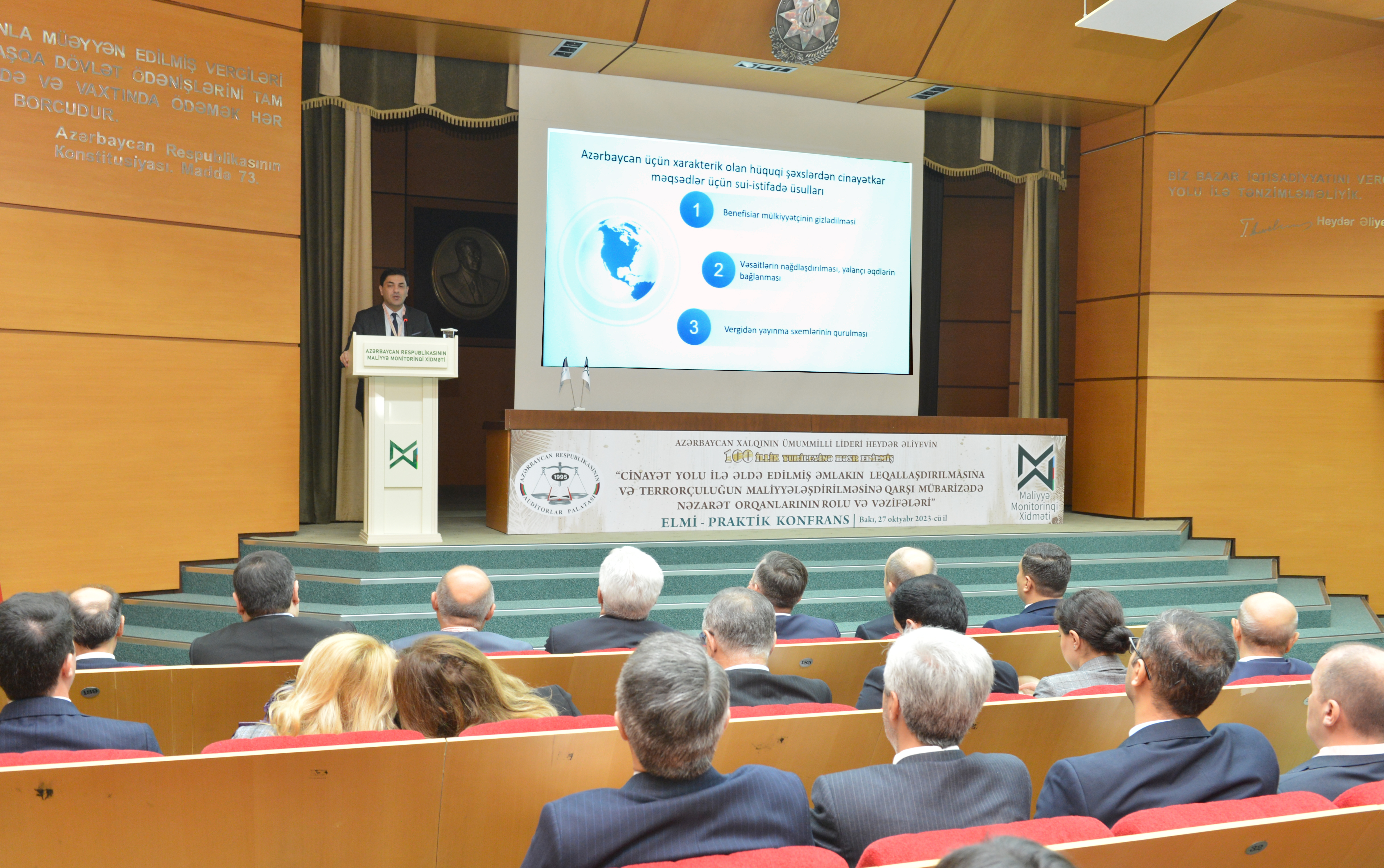Konfransın keçirilməsində məqsəd “Cinayət yolu ilə əldə edilmiş əmlakın leqallaşdırılmasına və terrorçuluğun maliyyələşdirilməsinə qarşı mübarizə haqqında” Azərbaycan Respublikasının 2022-ci il 30 dekabr tarixli 781-VIQ nömrəli, “Hədəfli maliyyə sanksiyaları haqqında” Azərbaycan Respublikasının 2022-ci il 30 dekabr tarixli 782-VIQ nömrəli və “Azərbaycan Respublikasının Cinayət Məcəlləsində və Azərbaycan Respublikasının İnzibati Xətalar Məcəlləsində dəyişiklik edilməsi haqqında” Azərbaycan Respublikasının 2022-ci il 30 dekabr tarixli 783-VIQD nömrəli Qanunlarının qüvvəyə minməsi, habelə Azərbaycan Respublikası Prezidentinin 2023-cü il 28 fevral tarixli 3770 nömrəli sərəncamı ilə təsdiq edilmiş “Cinayət yolu ilə əldə edilmiş əmlakın leqallaşdırılmasına və terrorçuluğun maliyyələşdirilməsinə qarşı mübarizəyə dair 2023-2025-ci illər üzrə Milli Fəaliyyət Planı”nın nəzarət qurumları və öhdəlik daşıyan şəxslər qarşısında yaratdığı yeni vəzifələrin icrası istiqamətində işgüzar müzakirələrin aparılması və tövsiyələr hazırlamaqdan ibarət olub.Tədbirə ölkəmizin dövlət qurumlarını, aparıcı elm-təhsil müəssisələri, kütləvi-informasiya vasitələrini təmsil edən nümayəndələr, Auditorlar Palatasının kollektivi və üzvləri qatılıblar. Konfransı Azərbaycan Respublikası Maliyyə Monitorinqi Xidmətinin İdarə Heyətinin sədri Zaur Fətizadə və Azərbaycan Respublikası Auditorlar Palatasının sədri Vahid Novruzov açaraq konfransın əhəmiyyətindən bəhs ediblər. Konfransda həmçinin Azərbaycan Banklar Assosiasiyasının prezidenti Zakir Nuriyev, Azərbaycan Respublikası Maliyyə Monitorinqi Xidmətinin Nəzarət və hüquq mühafizə orqanları ilə iş departamentinin direktoru Nurlan Babayev, Azərbaycan Dövlət İqtisad Universitetinin (UNEC) Elmi fəaliyyətin təşkili və idarəedilməsi departamentinin direktoru, i.e.d, professor Zahid Məmmədov, Azərbaycan Respublikası Mərkəzi Bankının Maliyyə Monitorinqi departamentinin 2-ci monitorinq şöbəsinin rəisi Vüsal Həsənov, Azərbaycan Dövlət İqtisad Universitetinin (UNEC) professoru Saleh Məmmədov, Azərbaycan İqtisadçılar İttifaqının sədr müavini, Azərbaycan Dövlət İqtisad Universitetinin (UNEC) dosenti Elşad Səmədzadə, İqtisadi islahatların Təhlili və Kommunikasiya Mərkəzinin aparıcı məsləhətçisi Yusif Məmmədov, Azərbaycan Respublikası Ədliyyə Nazirliyinin Ədliyyə sahəsində xidmətlər baş idarəsinin Nəzarət-analitik iş üzrə qrup rəhbəri Leyla Bərxudarzadə, Auditorlar Palatasının üzvü, sərbəst auditor Şamxal Kərimov, “Konstitusiya” Araşdırmalar Fondunun prezidenti, Ədliyyə Nazirliyi yanında İctimai Şuranın üzvü Əliməmməd Nuriyev və “KPMG Audit Azərbaycan” MMC-nin Audit üzrə partnyoru Nəsibə Muradxanova məruzələrlə çıxış ediblər.