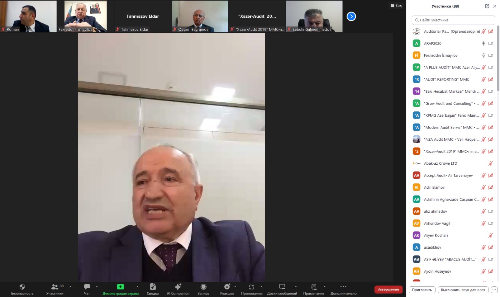 Daha sonra tədbirdə geniş məruzə ilə Auditorlar Palatasının üzvləri: “Azəri Audit Servis” MMC-nin auditoru Yasin Şirinov, Auditorlar Palatası Veteranlar Şurasının sədri, Sərbəst auditor Çingiz Abbasov, Sərbəst auditor İlham Süleyman, Sərbəst auditor Aftandil Əliyev, “ACTİVE CONSULTİNG CN” MMC-nin direktor-auditoru Nazim Alıyev, Gəncə bölgəsində fəaliyyət göstərən, Sərbəst auditor Hafiz Əhmədov, “A Plus Audit” MMC-nin direktor-auditoru Azər Əliyev, Naxçıvan bölgəsində fəaliyyət göstərən “Naxçıvan Muxtar Respublikası Auditor təşkilat”nın direktor-auditoru Roman Hüseynov və Kooperasiya Universitetinin doktorantı İlhamə Qasımova çıxış edərək Ulu Öndərimiz Heydər Əliyevin Vətəni və xalqı qarşısında müstəsna xidmətlərindən bəhs ediblər.
