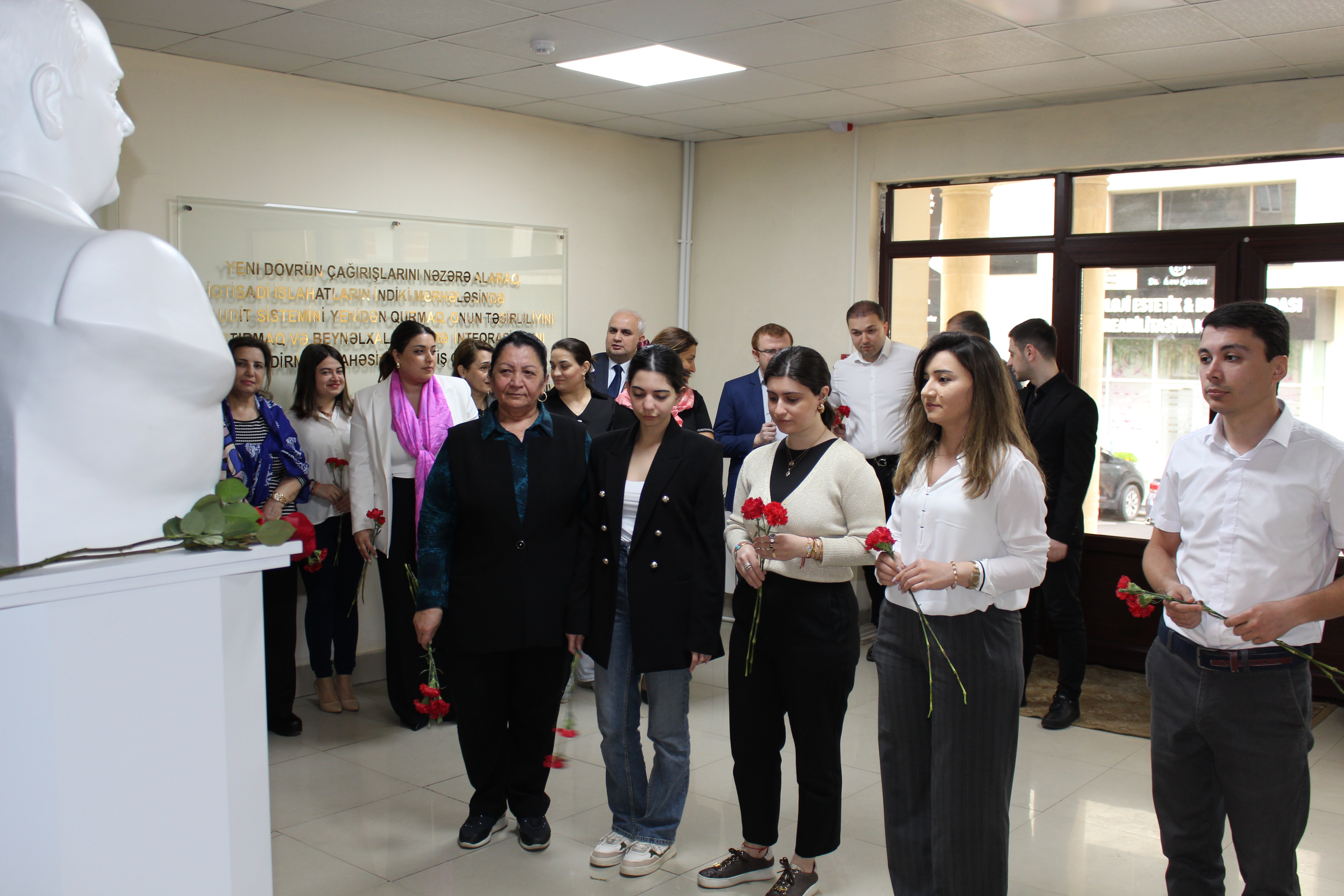 Tədbir Auditorlar Palatasının inzibati binasında qoyulmuş Heydər Əliyevin büstünün ziyarət edilməsi və daha sonra Ulu Öndərimizin anadan olmasının 101-ci ildönümünə həsr edilmiş videoçarxın nümayişi ilə başlayıb.