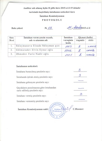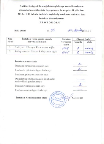 2015-ci il 19 dekabr tarixində II pillə üzrə keçirilmiş imtahanın nəticələri