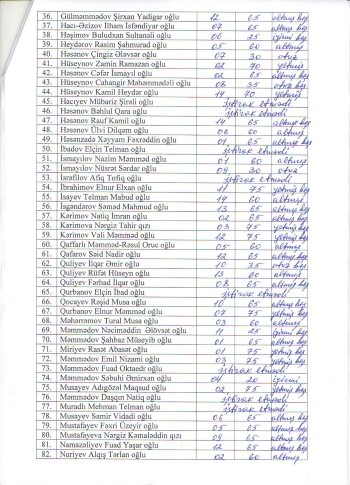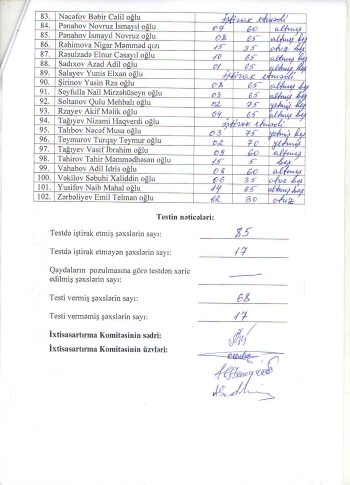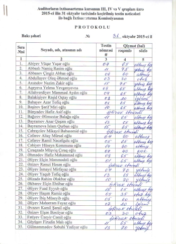 2015-ci il 31 oktyabr tarixində ixtisasartırma III, IV və V qruplar üzrə keçirilmiş imtahanın nəticələri