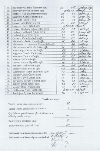 2012-ci ilin 13 oktyabr tarixində auditorların ixtisasartırma kursunun I və II qrupları üzrə imtahan keçirilmişdir