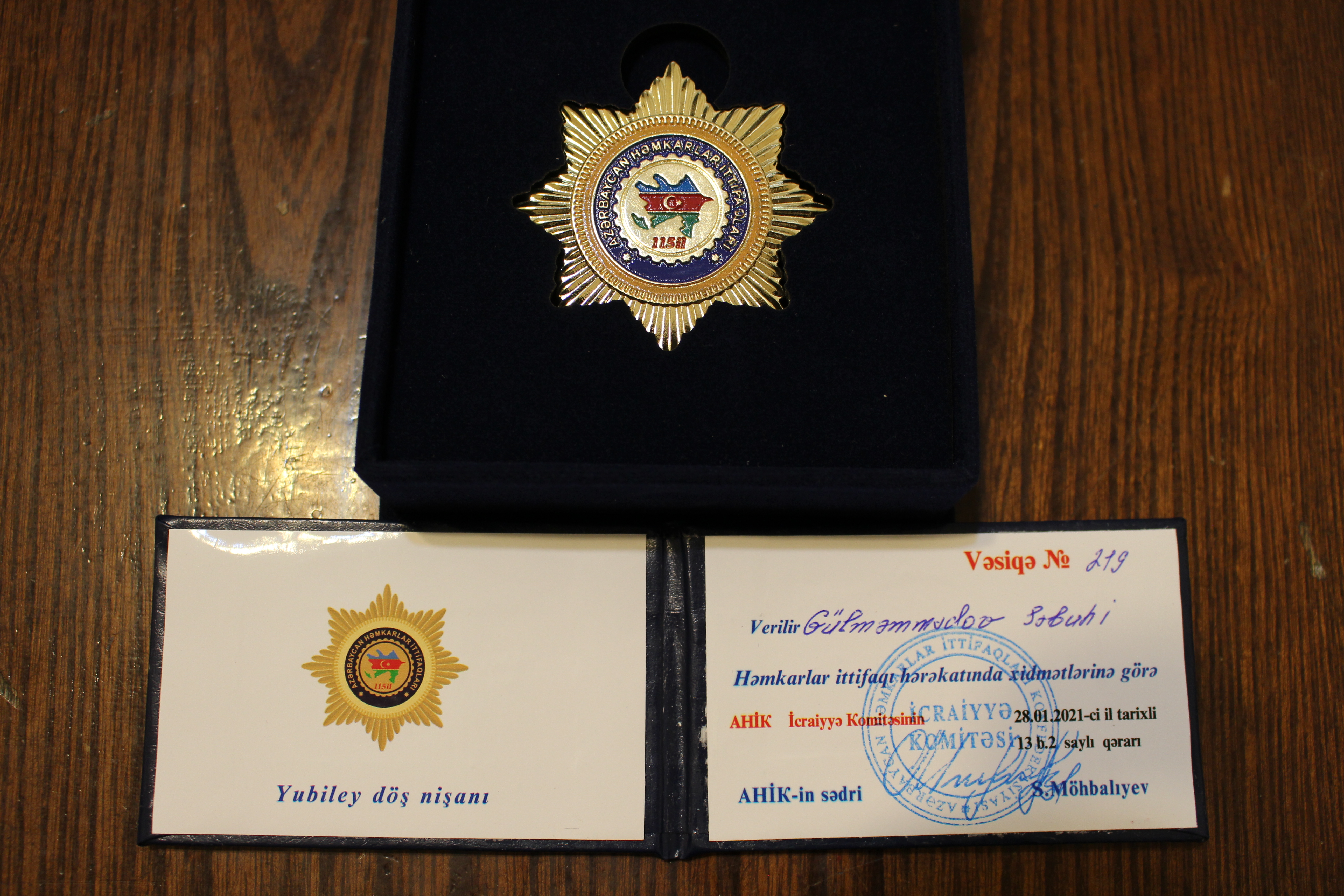 Azərbaycan Respublikası Auditorlar Palatasının icraçı direktoru, Həmkarlar İttifaqı Komitəsinin sədri Səbuhi Gülməmmədov təltif edilmişdir