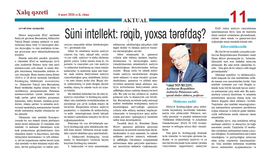 Jurnalın bu nömrəsində Azərbaycan Respublikası Prezidenti İlham Əliyevin azərbaycan Respublikasında auditor sahəsində uzunmüddətli səmərəli fəaliyyətinə görə Vahid Tapdıq oğlu Novruzovun “Şöhrət” ordeni ilə təltif edilməsi haqqında 2020-ci ilin 6 yanvar tarixli sərəncamının azərbaycan və rus dillərində mətnləri nəşr olunmuşdur. Eyni zamanda üz qabığında həmyer....